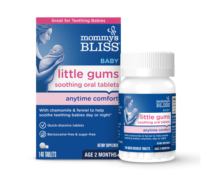 قرصهای خوراکی Mommy’s Bliss Little Gums با ترکیب طبیعی بابونه و دانه رازیانه، به تسکین درد و التهاب لثه در دوران دنداندرآوردن کمک میکنند.