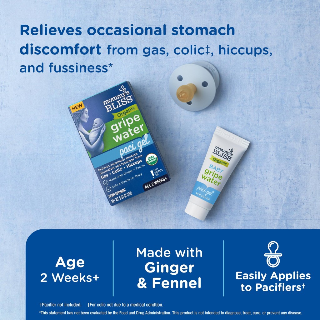 ژل ارگانیک Gripe Water Paci Gel از برند Mommy’s Bliss با فرمولی بسیار ملایم و طبیعی مخصوص نوزادان تازه متولد شده طراحی شده است تا بهطور مؤثر در کاهش نفخ، کولیک (دلدرد نوزادی) و بیقراری ناشی از ناراحتیهای گوارشی کمک کند.