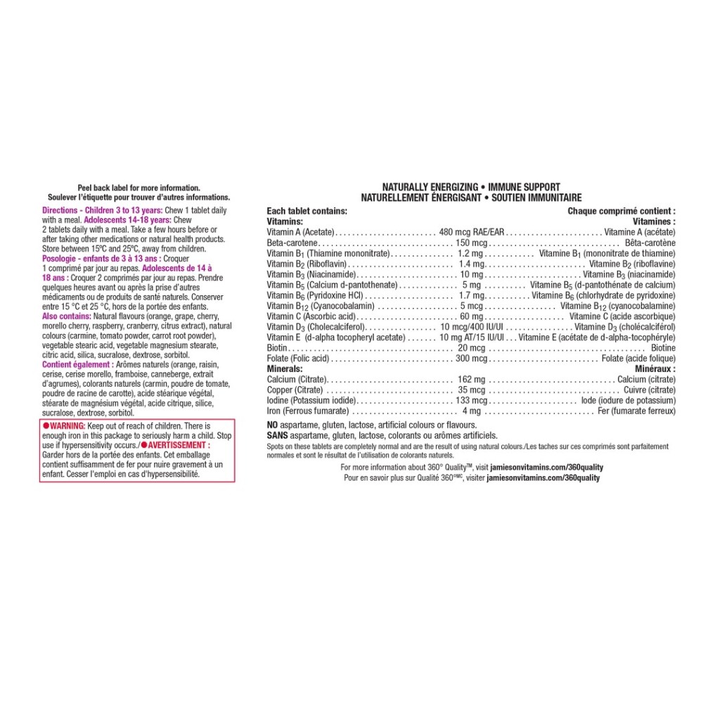 قرص مولتی ویتامین جویدنی و آهن جیمیسن jamieson