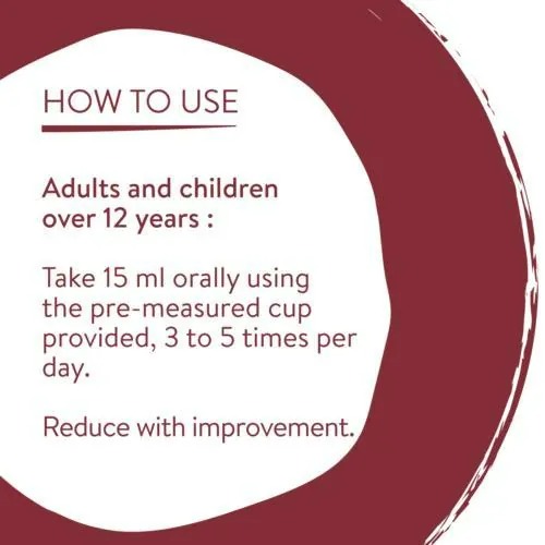 ۱۵ میلیلیتر، ۳ تا ۵ بار در روز (با پیمانه اندازهگیری داخل بسته)