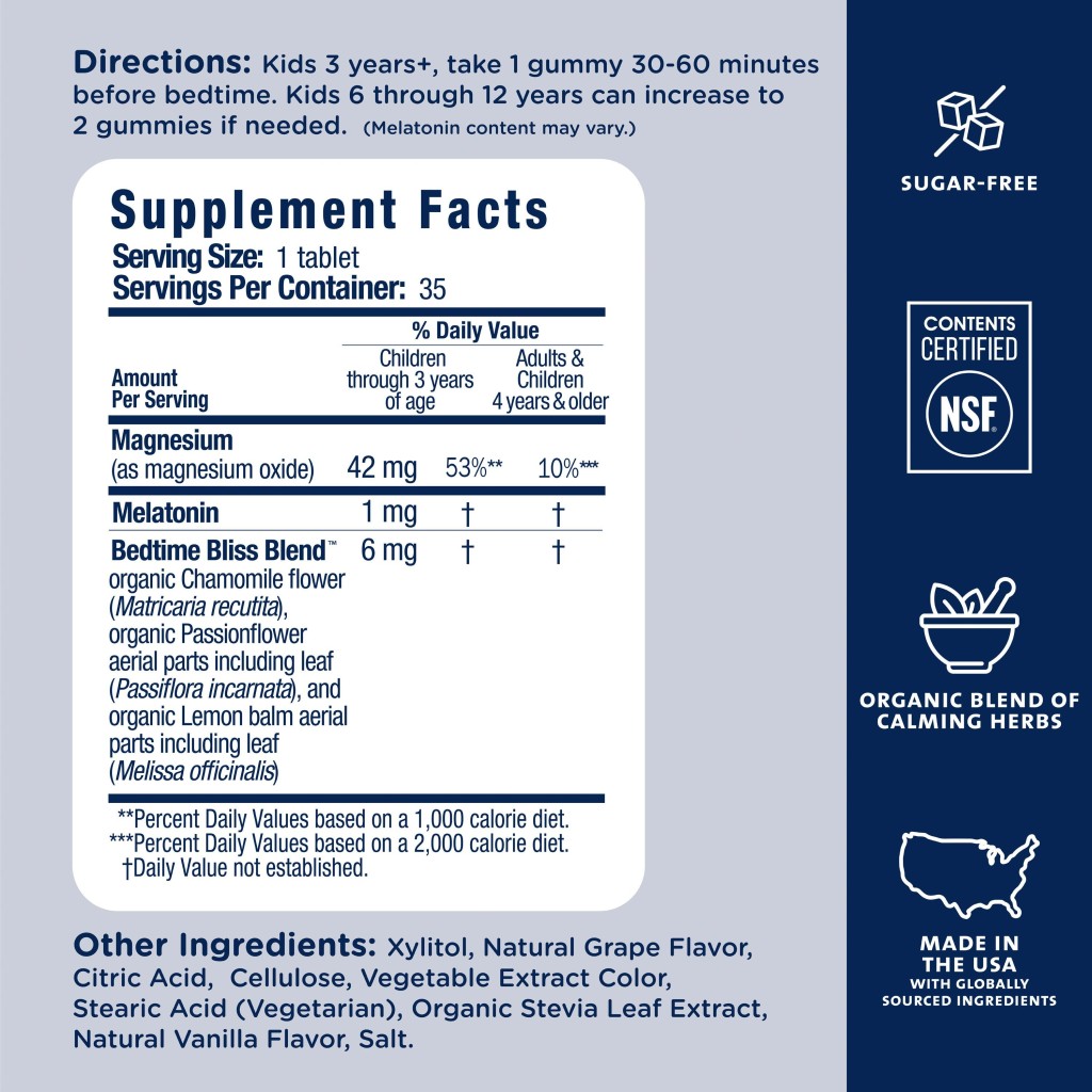 قرص خواب کودک، ملاتونین کودک، قرص جویدنی خواب بچه، مکمل خواب کودک، Mommy’s Bliss sleep, kids melatonin chewable, قرص خواب بدون شکر کودک، خواب آرام کودک