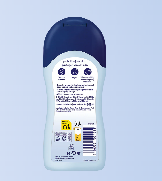 روغن بچه بیوبن، روغن کودک Bübchen، روغن ماساژ نوزاد، روغن ناحیه پوشک نوزاد، روغن بچه وگان، روغن بچه آلمانی، روغن پوست حساس کودک، Bübchen Baby Oil، روغن بدون مواد نگهدارنده نوزاد، روغن کالاندولا نوزاد