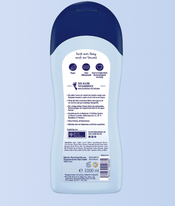 مایع حمام کودک بیوبن، شامپو بدن نوزاد Bübchen، مایع حمام نوزاد بابونه، شوینده حمام کودک وگان، حمام روزانه نوزاد، Baby Bad Bübchen، شوینده ملایم کودک آلمانی، مایع حمام بدون نگهدارنده نوزاد